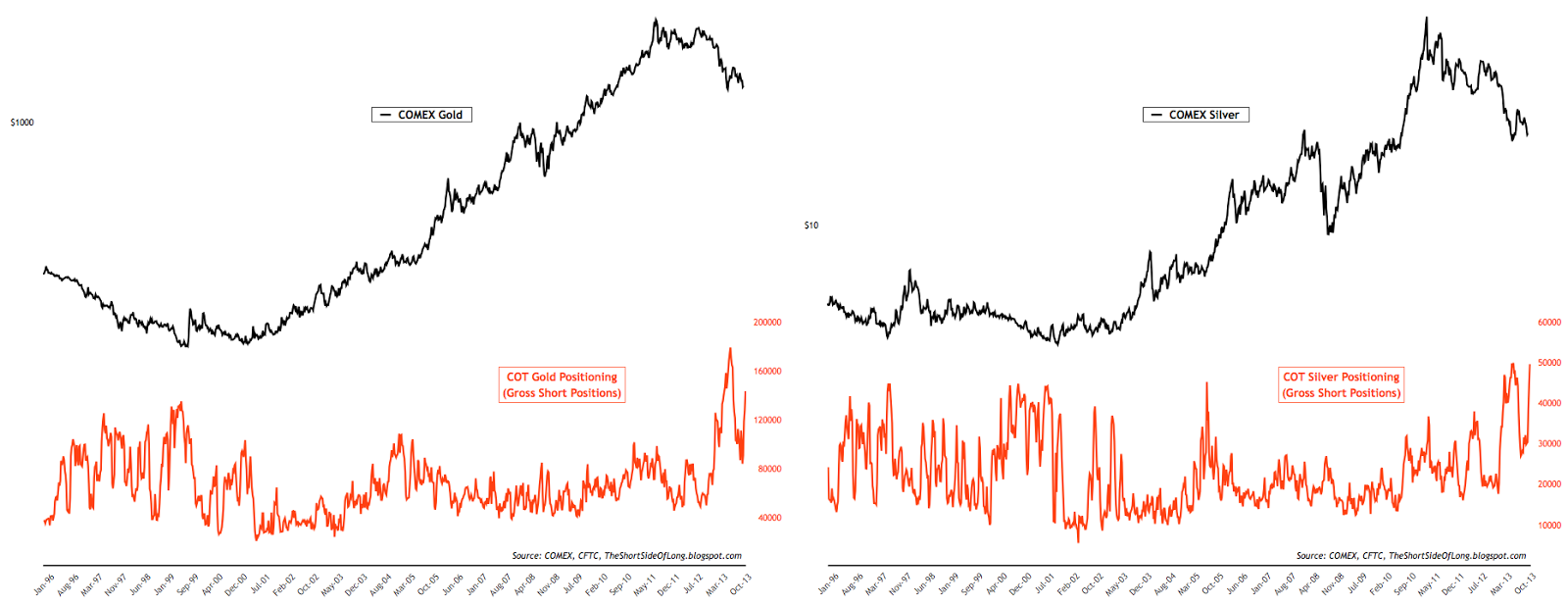 Chart 12 – Recent commitment of traders reports (also known as dumb money) showed hedge funds and other speculators have cut their net long exposure in the precious metals sector to the lowest levels since June of this year. Positioning currently stands at 26,5000 net long contracts on Gold and 6,600 net long contracts on Silver. Dissecting the report further, showed that Gold gross longs are at the lowest level since the Global Financial Crisis of 2008, while gross shorts have once again risen to extreme heights. This type of positioning also confirms the negative sentiment surveys.