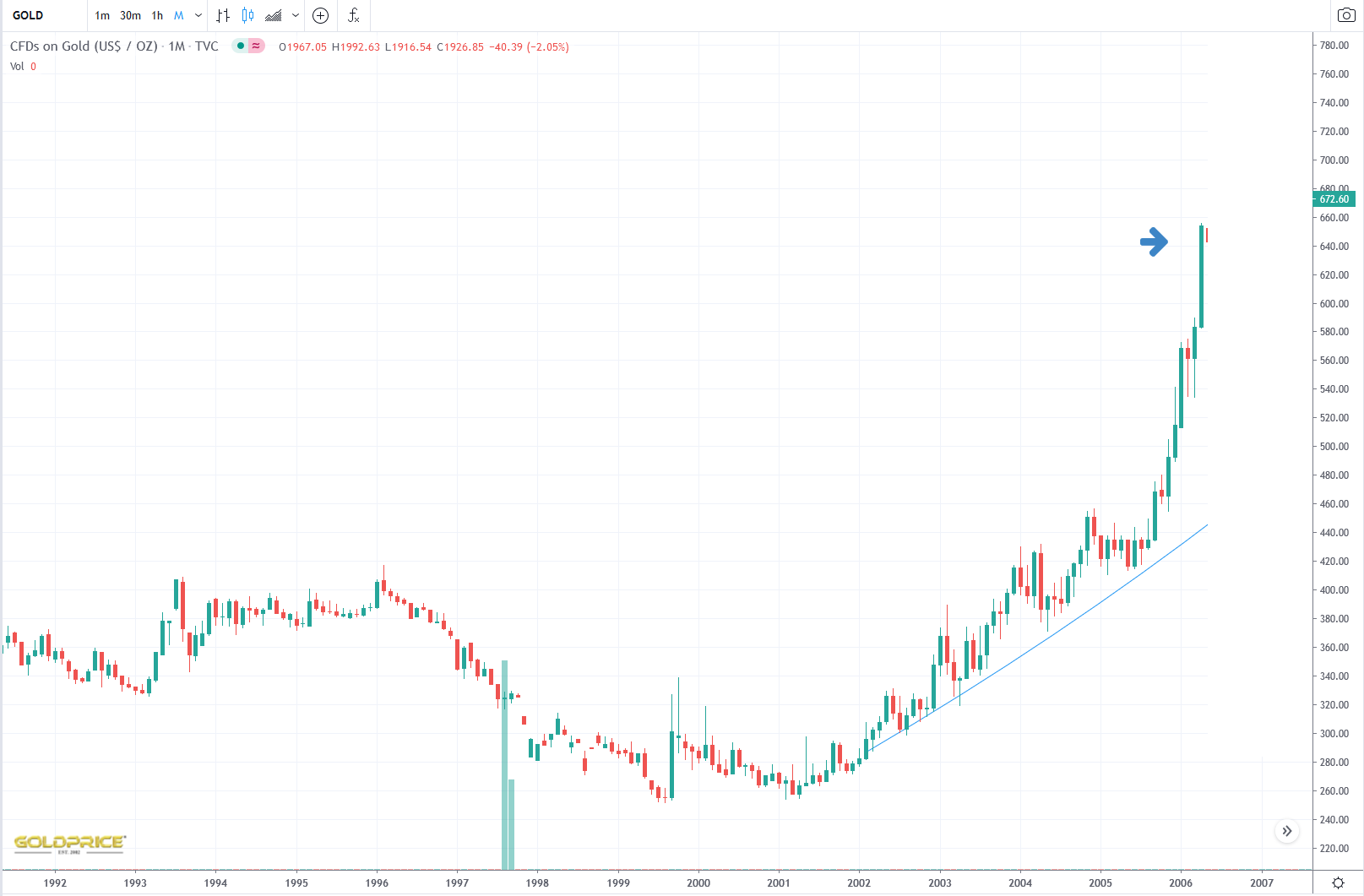 “Imagine it’s 2007 and you are looking at this chart. Would you buy $gold at this spot after a rally of almost 45% in 7 months?”