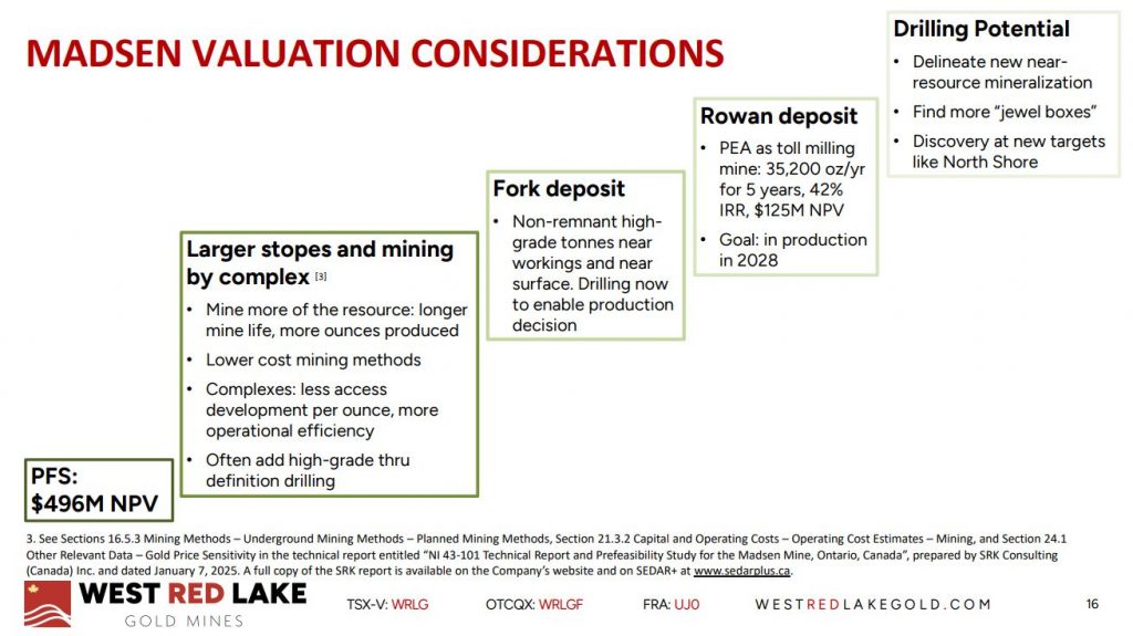 Next we review all the development work in their underground operations that led up to gaining the confidence mining at Madsen since the middle of last year, opening of stopes in multiple areas like Austin and South Austin in addition to McVeigh.  Then we look ahead to other areas of growth like the new 904 high-grade zone in Lower Austin, the potential to drift over to Fork for 2027, as well as the potential to supplement mill throughput with ore from the satellite Rowan deposit in the next couple years. There has been ongoing drilling at these areas over the last few months which will continue moving forward, further defining the areas for expanded resources and future production growth.