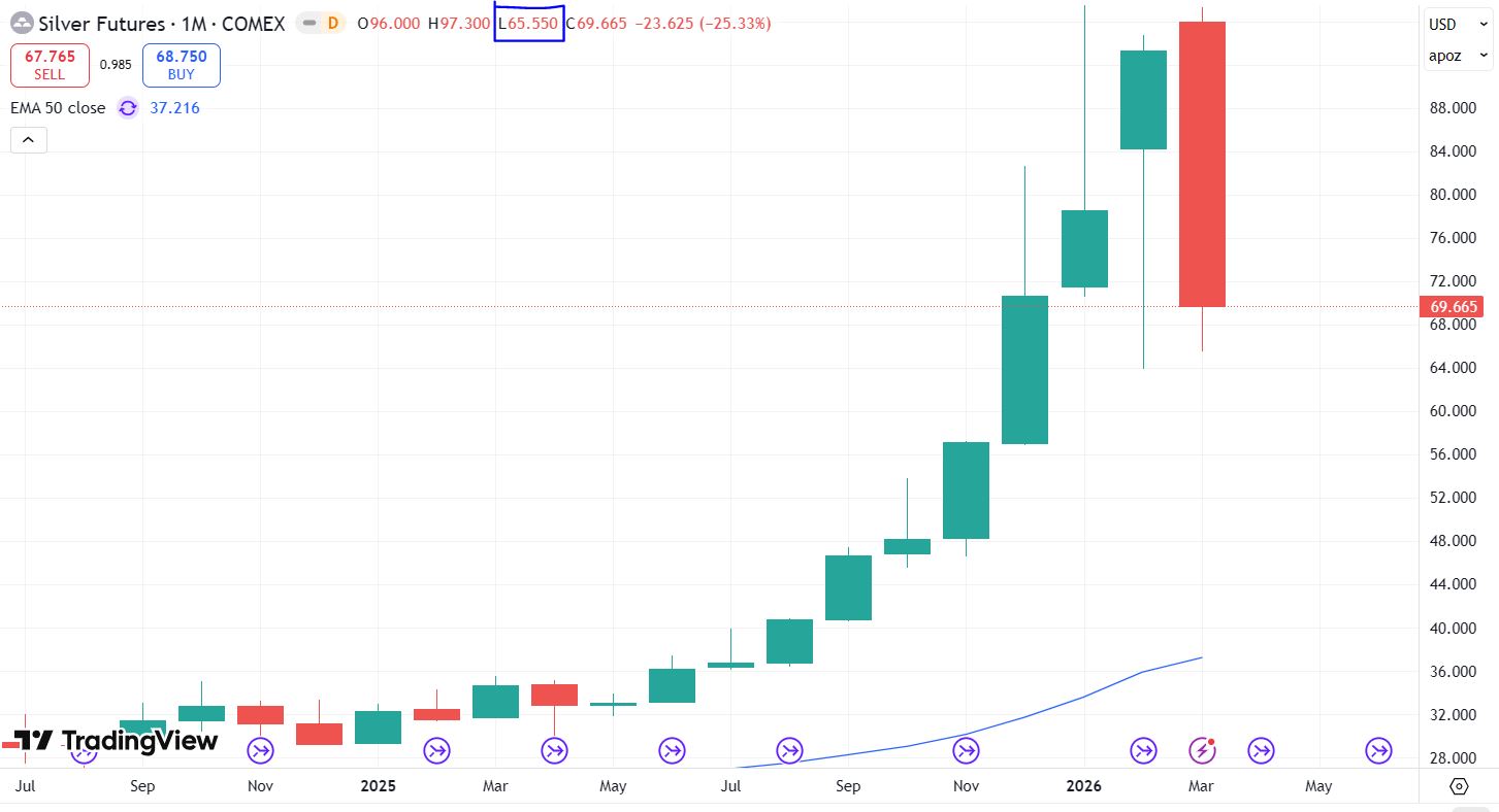 Look at this huge red ugly engulfing monthly candle on silver that cleared out the prior 2 months candles from January and February and closed below the December close.