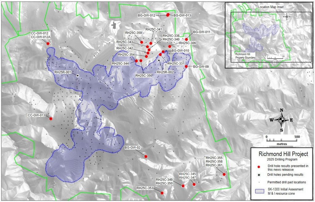 - Expansion drill hole RH25C-310 intersected 5.00 grams per tonne gold (g/t Au) and 28.64 g/t silver (Ag) over 24.9 meters (124 gram meters Au), including 60.82 g/t Au and 61.68 g/t Ag over 1.5 meters (89 gram meters Au) and RH25C-348 intersected 2.46 g/t Au and 19.16 g/t Ag over 32.7 meters (81 gram meters Au).