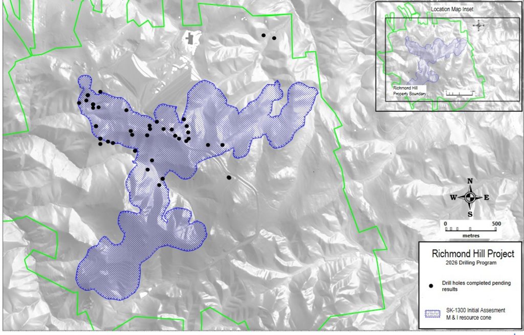 The 2026 Drill Campaign at Richmond Hill is underway and has completed 7,565 meters in 48 infill drill holes to date, representing one third of the total planned drilling for the year. The campaign includes 15,481 meters of drilling in 109 holes to follow up on the success from 2025 and consists of a combination of infill, expansion, geotechnical and mine plan drilling. The campaign is expected to be completed in the third quarter of this year, with a steady string of assay results anticipated over the balance of the year.