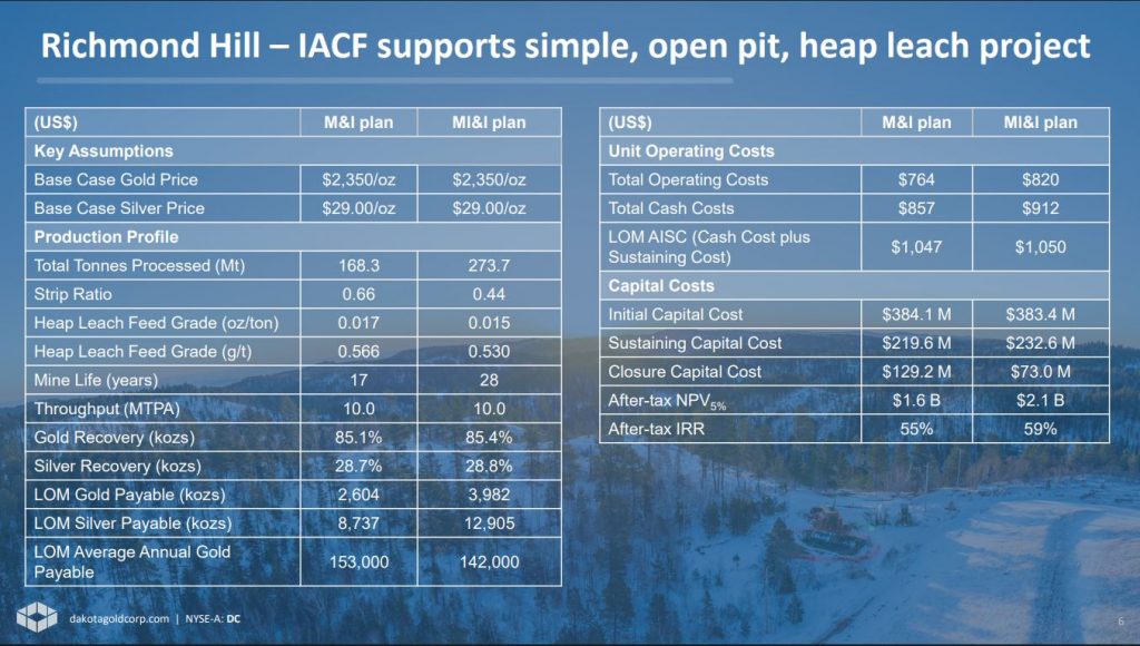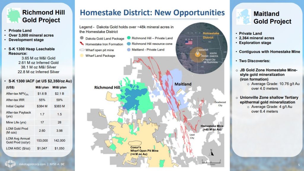 Dakota Gold – Initial Assessment with Cash Flow and Ongoing 27,500m Exploration Program At Richmond Hill and Optionality At The Maitland Gold Project